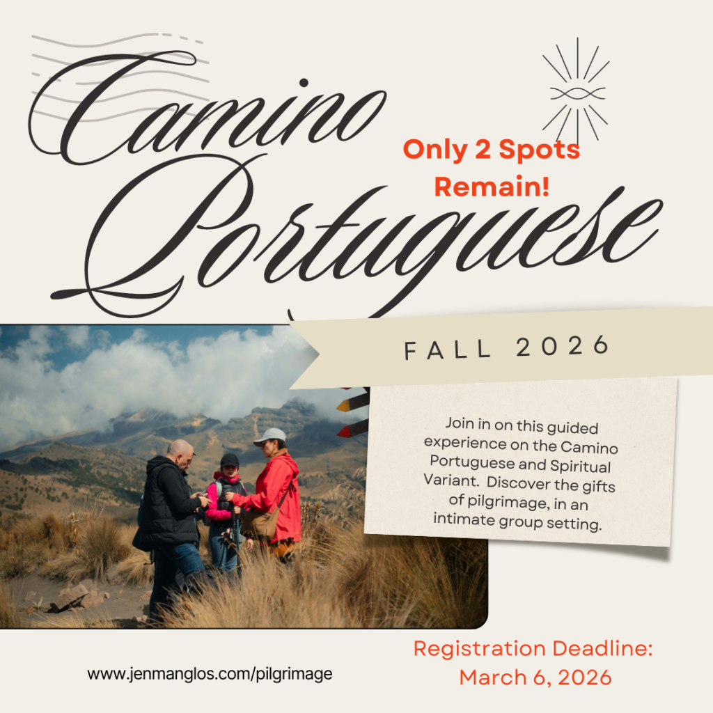 You’ve said yes to pilgrimage, but now what? Join Jen for a workshop with exercises and tools to help you clarify and take the next steps into your pilgrimage experience. This online offering will be offered across a variety of dates: